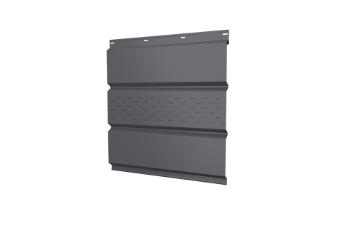 Описание товара: "Софит металлический центральная перфорация 0,5 Satin с пленкой RAL 7004 сигнальный серый"