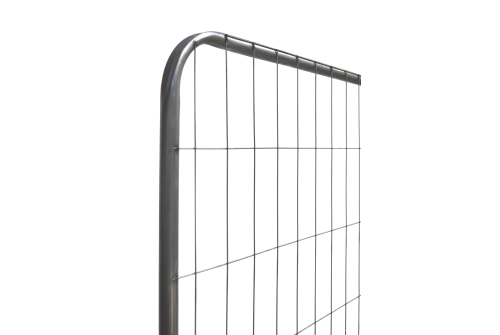 Секции временного ограждения Round 1,95×3,45 метра изготовлены из сварных панелей размером 1,79×3,43 метра без гибов, приваренных к рамкам из гнутой трубы диаметром 38 мм и нижним перекладинам диаметром 25 мм.