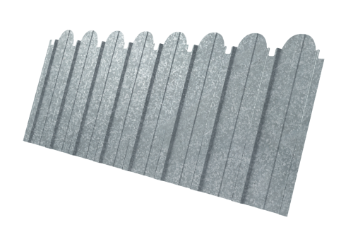 Декоративная вырубка по верхнему краю листа позволяет возвести надежное, экономичное и при этом привлекательное ограждение.