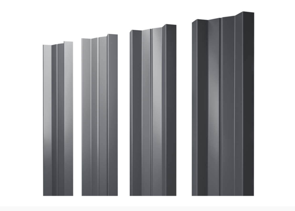 Штакетник М-образный А с прямым резом 0.5 GreenCoat Pural BT, matt RR 23 темно-серый (RAL 7024 мокрый асфальт)